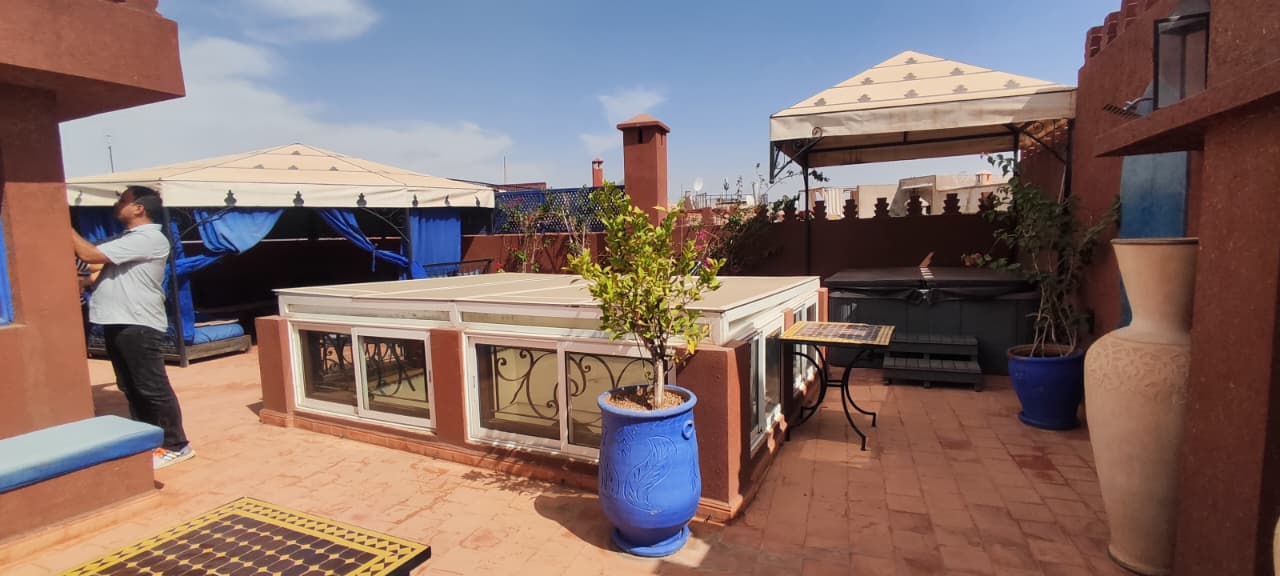 Le riad dispose également d’un rooftop spacieux avec jacuzzi, un véritable havre de détente au cœur de la médina. Cet espace extérieur est idéal pour profiter du soleil de Marrakech, organiser des repas entre amis ou accueillir des clients dans un cadre paisible et convivial.