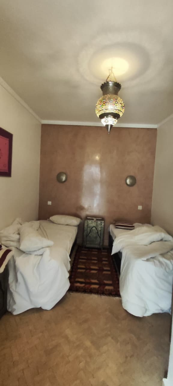 Ce riad titré d’une superficie de 110 m² se compose de 5 chambres élégantes, chacune disposant de sa salle de bain privative, offrant ainsi un confort total et une grande intimité à ses occupants. Les matériaux traditionnels, les zelliges raffinés et les boiseries sculptées reflètent le savoir-faire artisanal marocain et confèrent à ce lieu une atmosphère chaleureuse et authentique.